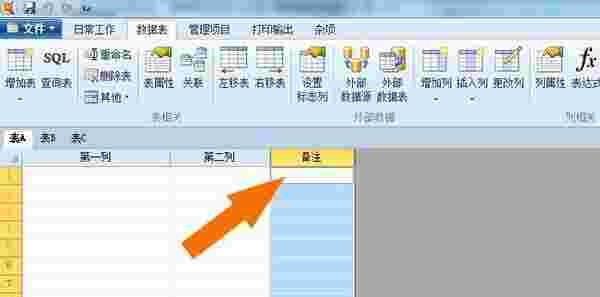 1、打开Foxtable软件,在软件窗口中可看到表格列的默认名称