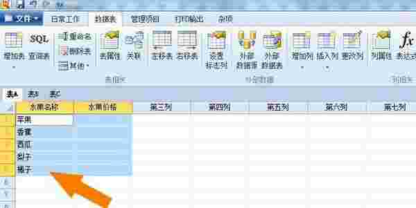 1、打开Foxtable软件,新建一个表格,比如水果名称表,如下图所示: