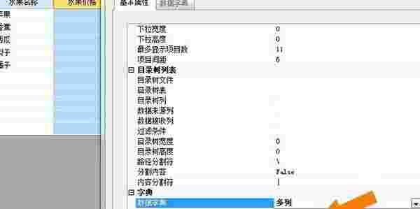 4、在弹出的【列的属性】窗口上,选择【数据字典】选项,并选择多列选项