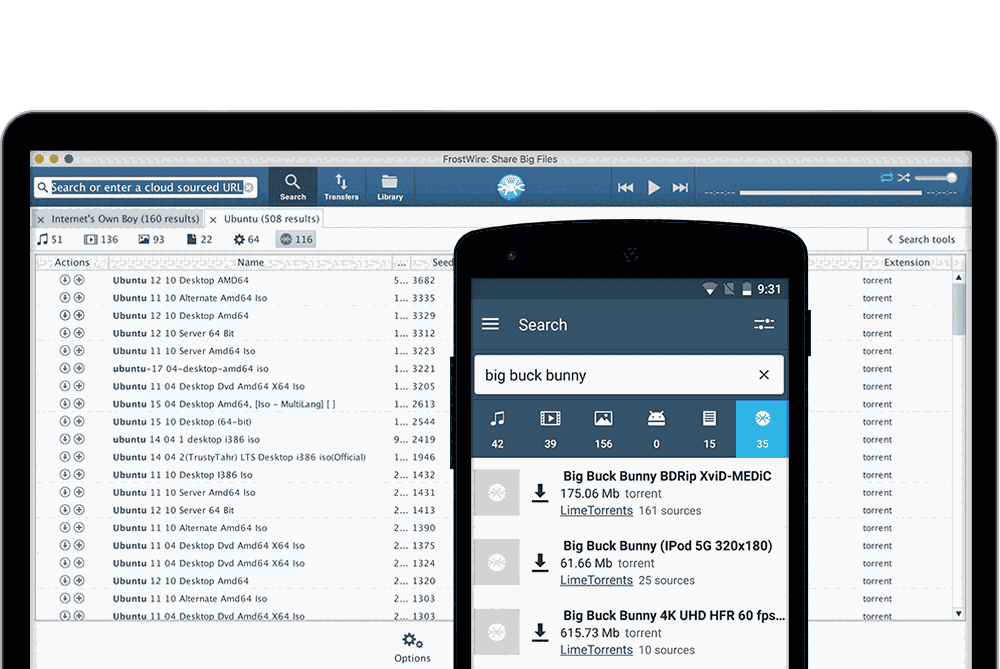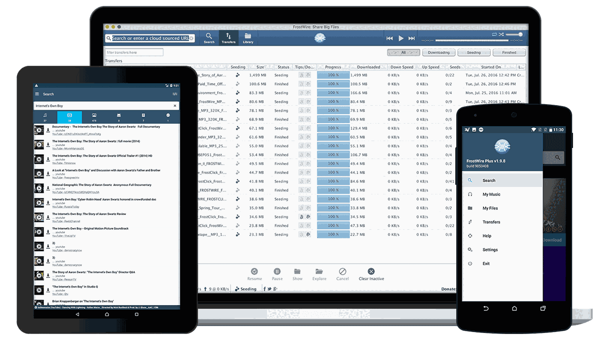 可以通过FrostWire官方版与Morpheus、BearShare、LimeWire及其它p2p软件广泛分享各种MP3音乐、电影、图片、游戏等资源。