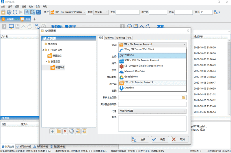FTP Rush是一款专业的FTP客户端的软件工具,软件支持SFV校验、FXP传输、实时压缩、同步文件等功能。非常方便快捷,软件界面简约,布局直观清晰。操作简单,容易上手,是一款十分实用的工具。