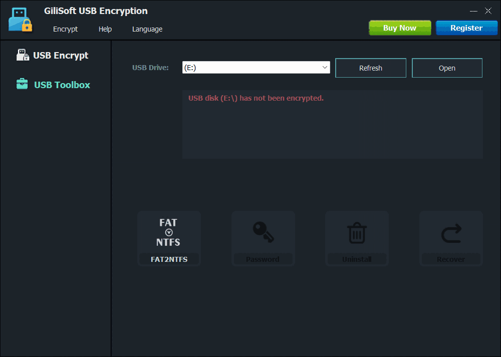 USB加密可以加密USB u盘,闪存盘,移动硬盘,内部硬盘。我们建议您格式化您的u盘为NTFS文件系统类型,然后开始加密与Gilisoft