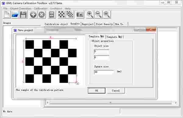 Toolbox绿色版使用棋盘作为校准模式。它仅使用奇数X偶数(或甚至X奇数)平方(即5×6、7×8、10×7等)的校准模式。