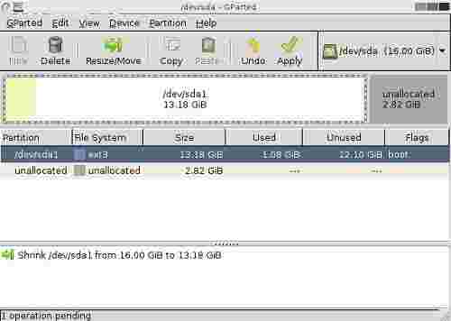 与其他GNOME应用程序一样,gparted中的操作 可以通过以下几种方式执行:使用菜单,使用工具栏或使用快捷键。