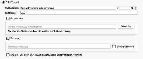 单击“SSH连接设置”中的“启用跨SSH的TLS”,并按照一节中的说明进行操作如何通过EC2连接到弹性缓存