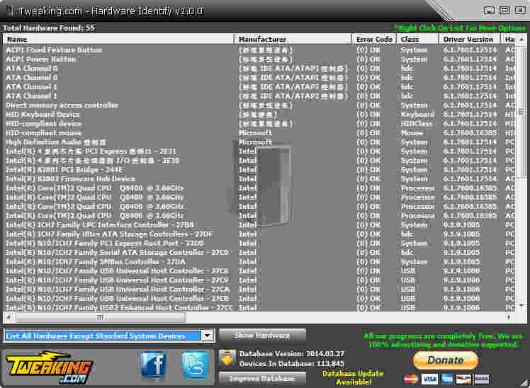 Hardware Identify是一款专业的硬件检测的工具软件。使用者可以使用软件查看各种硬件的详细信息包括出厂时间、制造商等。软件还支持对电脑硬件和系统进行实时监测包括CPU温度、电压、风扇转速、电源输出等。可以自动形成日志文件或报告供使用者随时查看。