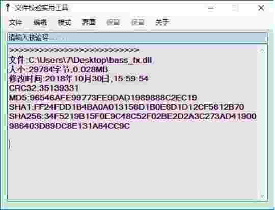 经典模式->Hash工具功能基本囊括(除了进度条的效果←_←),拖拽文件、目录到文本框中,即自动开始计算哈希值,默认包括CRC32、MD5、SHA1、SHA256,输出文件名、大小、版本号及以上四种算法的哈希值。