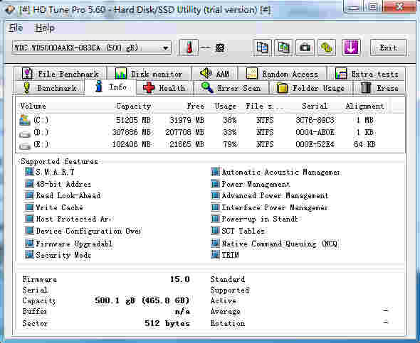 Tune是一款小巧易用的硬盘工具软件,其主要功能有硬盘传输速率检测,健康状态检测,温度检测及磁盘表面扫描等。另外,还能检测出硬盘的固件版本、序列号、容量、缓存大小以及当前的Ultra
