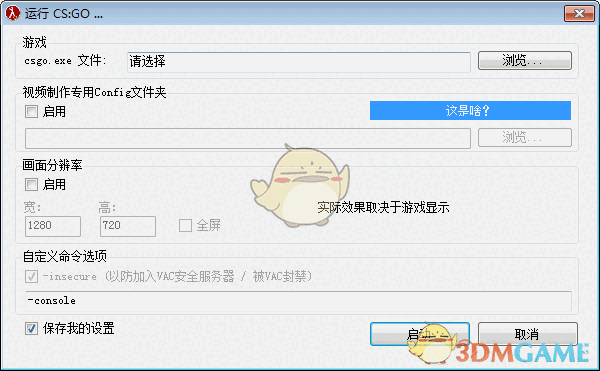 二、进入CSGO启动界面,输入CSGO的打开位置,点击启动。