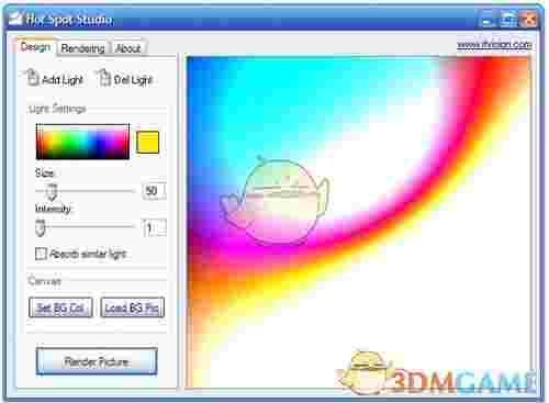 Hot Spot Studio 是一款颇具有创意的图片编辑软件,Hot Spot Studio 可以轻松创造出具有聚光灯效果的迷离感十足的图片效果。Hot Spot Studio 的使用方法非常简单,你可以通过右键添加或删除大光斑,而后再用左键移动其所在位置;然后调整尺寸和强度;载入背景颜色或是图片;最后点击生成图片即可。