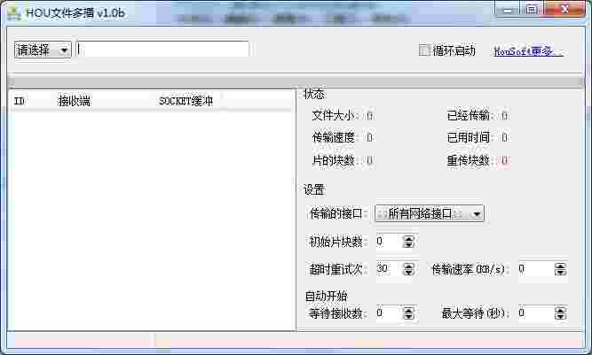 HOU文件多播是一款专业的文件传输的软件工具,软件支持快速的文件传输,可以对多个客户端进行文件传输。非常方便快捷,软件界面简约,布局直观清晰。操作简单,容易上手,是一款十分实用的工具。
