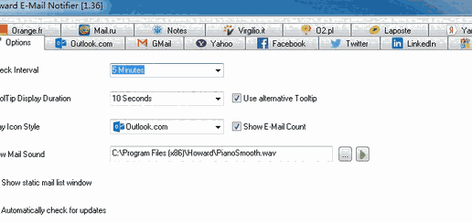 Howard Email Notifier是一款专业的邮件提醒的软件工具,软件的主要作用是提醒使用者有新邮件的通知,可以代替Windows Live Messenger的邮件提醒。非常方便快捷,软件界面简约,布局直观清晰。操作简单,容易上手,是一款十分实用的工具。