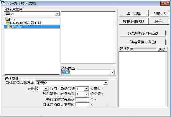 html文件转txt文档是一款专业的html文件的转换工具软件。软件可以帮助使用者将html文件转换为txt文本文档,使用者可以在转换文件之前修改目标文档的命名方法、替换转换后的内容、行数、每行连续字符的最多个数等等,还是非常方便的。