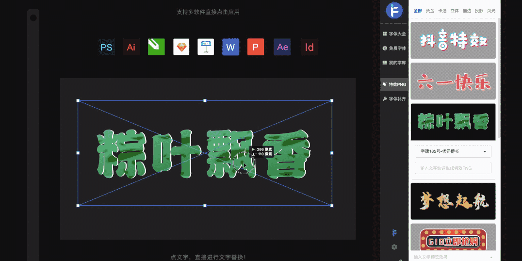 单击字体一键使用,快速查看字体效果,无需下载安装