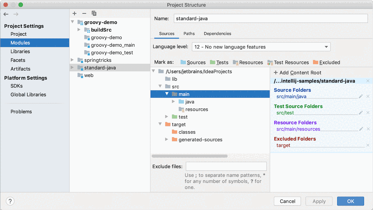 我们向Maven编译器插件添加了实验性功能。它现在允许您为生产和测试源分别设置特定的语言级别。您可以在首选项/设置|中启用此选项。构建、执行、部署|构建工具|马文|导入.