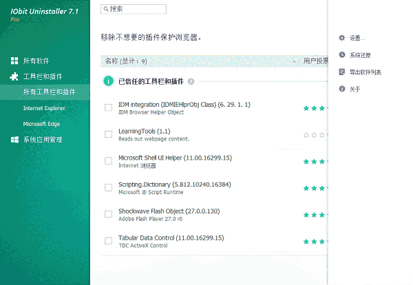 更快更安全浏览:烦人的工具栏和插件降低了您的在线浏览体验,并侵犯了您的在线隐私。IObit Uninstaller 是用于检测和删除恶意和基于广告的插件的最佳卸载工具,以避免更改您的主页,跟踪您的活动或弹出广告。IObit Uninstaller 还支持为 Windows 10 用户删除 Microsoft Edge 扩展。