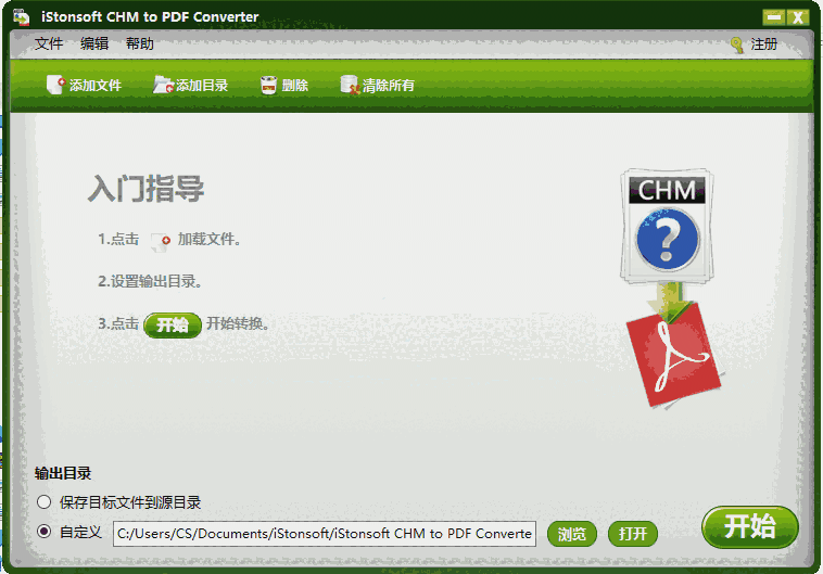 一旦选择了输入文件,除了选择将保存结果文件的位置以外,在单击“开始”按钮之前您无需执行任何其他操作。iStonsoft CHM to PDF