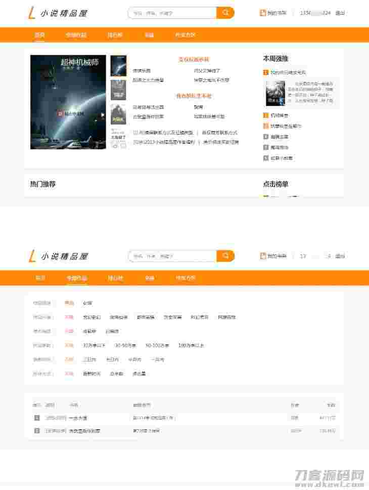 9080免费资源分享,PHP源码、网站源码、游戏源码、模板插件、软件工具、网络教程、为中国站长提供一站式源码下载 » java橙色风格小说精品屋小说网站源码