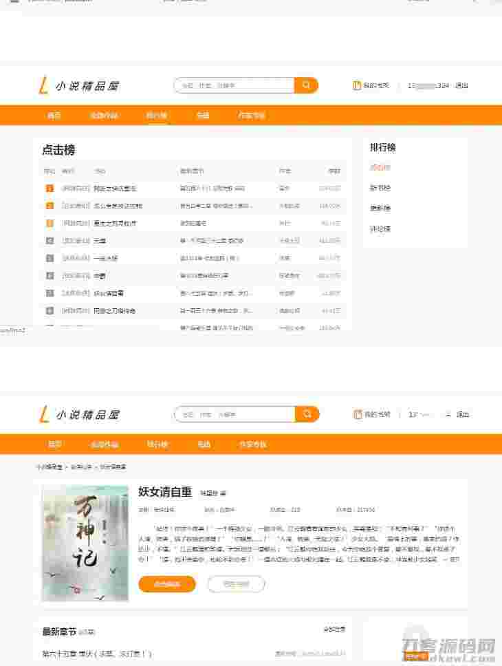java橙色风格小说精品屋小说网站源码 带支付+作者中心+自动采集