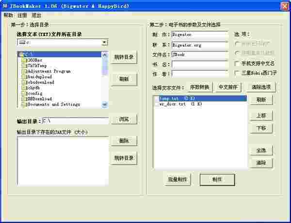 Jbookmaker是一款专业的TXT文本文档的转换工具软件。使用者可以通过软件将TXT文本文档格式快速转换为jar格式的电子书文件。软件的使用方法也很简单,选择txt所在目录,设定输出目录,填写电子书参数及文件选择点击制作即可,这是一款很不错的软件,对该软件感兴趣的小伙伴快来下载吧!