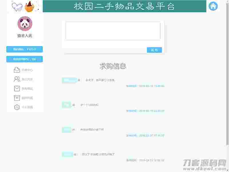 9080免费资源分享,PHP源码、网站源码、游戏源码、模板插件、软件工具、网络教程、为中国站长提供一站式源码下载 » jsp+ssm+mysql校园二手市场交易平台源码 带视频教程