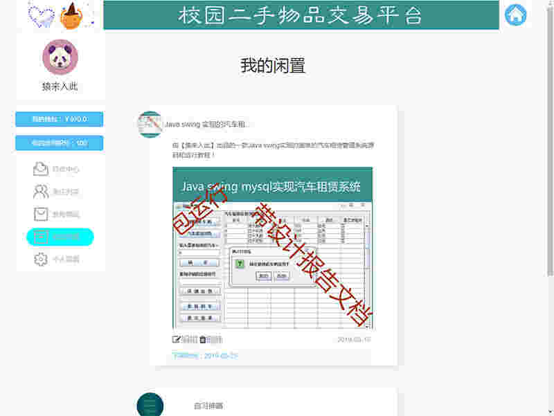 9080免费资源分享,PHP源码、网站源码、游戏源码、模板插件、软件工具、网络教程、为中国站长提供一站式源码下载 » jsp+ssm+mysql校园二手市场交易平台源码 带视频教程