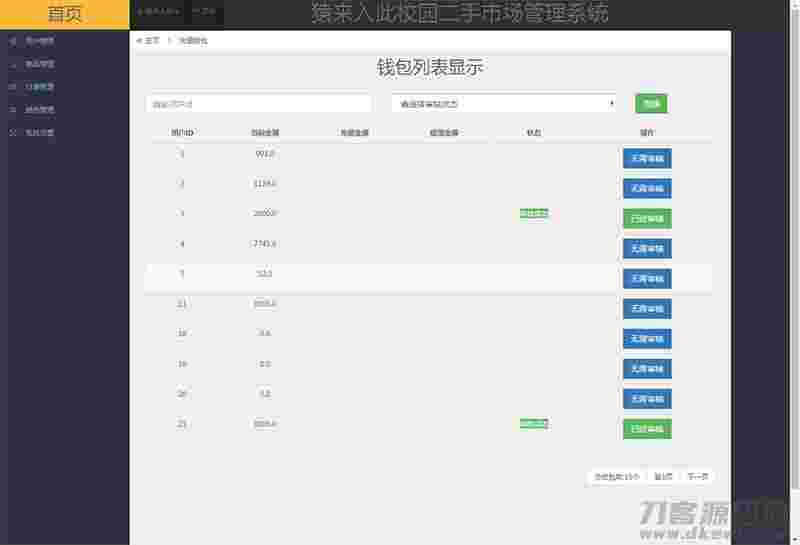后台主要功能有:用户管理、商品管理、订单管理、用户余额管理、管理员密码修改等。