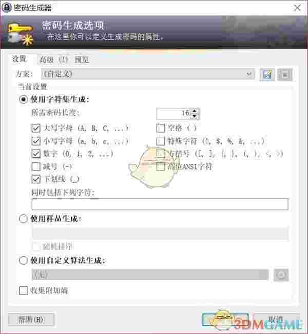 如果怕麻烦,就按默认的就好了,因为有的网站的密码是不支持其他字符的,生成后还需要手工删除。