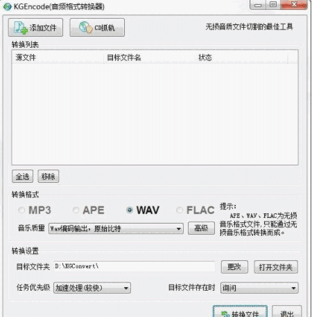 等无损音乐格式的支持,需要说明的是无法从低码率的音乐格式转换成无损音乐格式,如果非要这样的话那么假无损将很快泛滥起来,不过无损音乐格式之间互转以及高音质高码率的音乐转换为高品质或者低品质