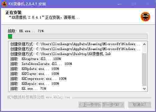 4、KK录像机正在安装当中,过程很快,请耐心等候。