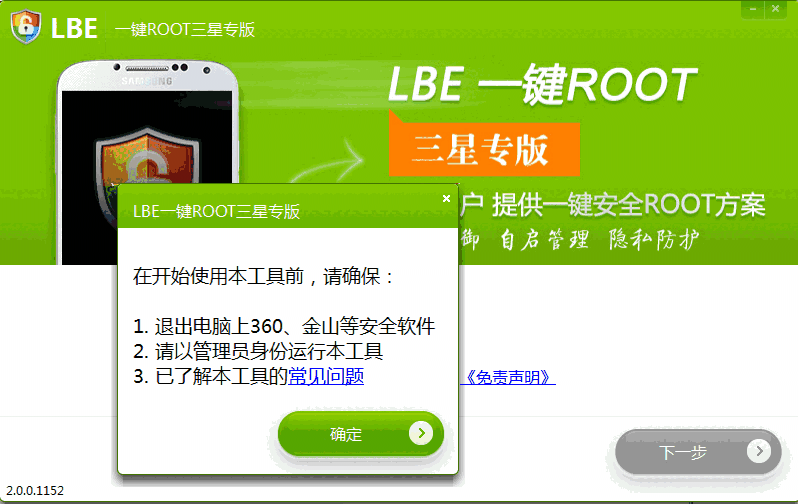 1、下载安装LBE一键root安装文件,点击打开下一步。