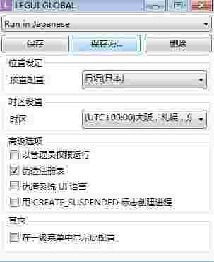 运行LEGUI.exe可进行转区配置,我们常用的就是转日语Run in Japanese了