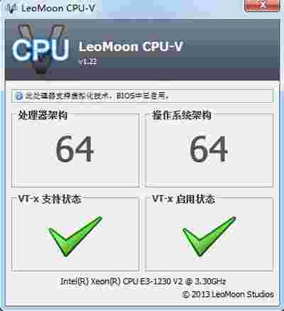 LeoMoon CPU-V 将检测出您的硬件是否支持虚拟化技术