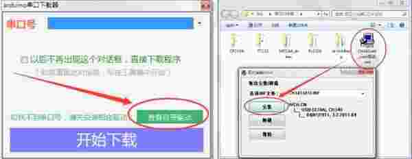 如果没有CH340串口号出现,一般是电脑上没有安装过USB驱动。请按照下一页步骤装好驱动再开始下载。