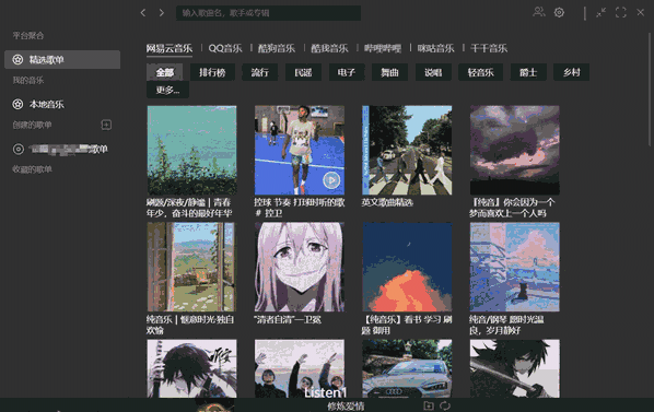 用 Python 语言开发的免费开源综合音乐搜索工具项目,桌面版的 Listen 1 支持 Windows 和 Mac