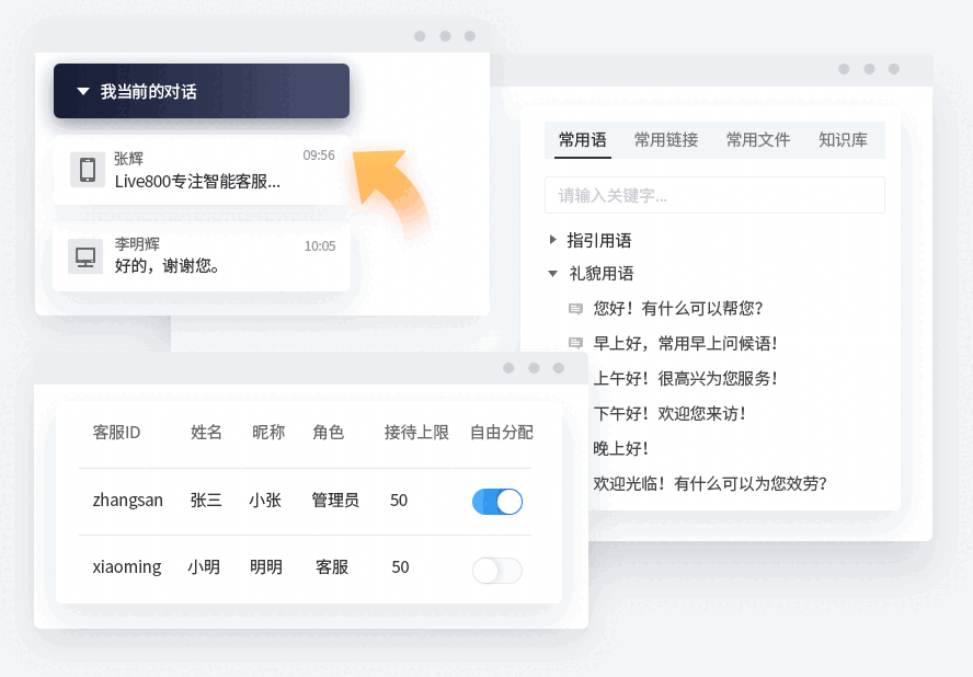 Live800配备自动流程化的设计,当客服在同时面对不同来源、不同渠道的多访客对话时可自如切换,高效服务。