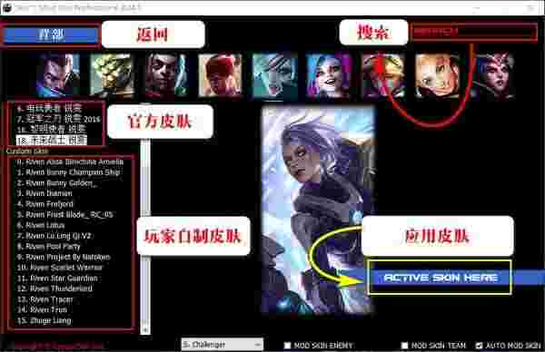 LOLSkinPro(特效换肤盒子)可以更换所有英雄的所有皮肤,包括各种限定皮肤和绝版皮肤!只需简单几步操作即一键更换,软件对英雄进行了详细的分类,也可以直接模糊搜索。