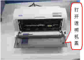1、关闭打印机电源,打开打印机前面透明机盖;