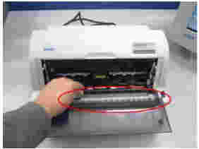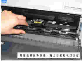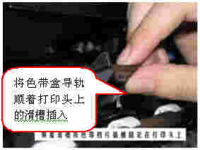 6、色带盒安装只需按相反过程操作即可。安装色带导轨时可参考以下图片: