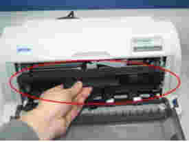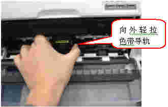 4、单手捏住色带导轨,向外轻拉直到离开打印头;