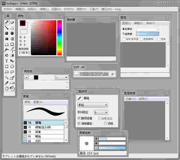 1.抖动修正可以自动在线条上加入出笔和收笔时的笔锋。可以在很大范围内修正数位板的抖动。具备下笔前补正功能。并且可以对已经画出的线条惊醒抖动修正。