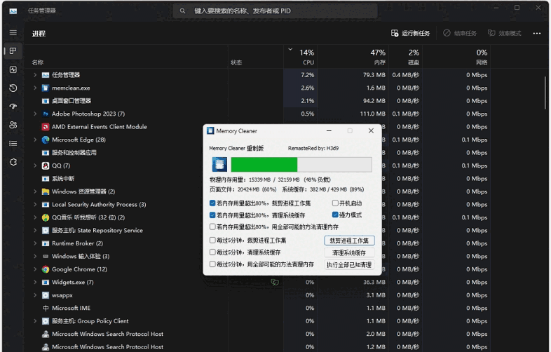 原版 Memory Cleaner 还是非常好用的,但是会强制联网更新,经常连不上他的服务器就用不了了。