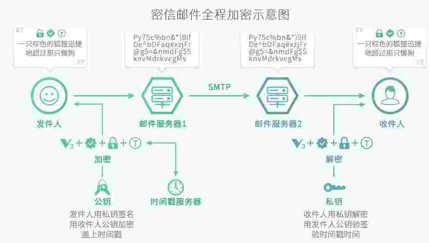 密信是一个基于电子邮件系统的加密通信系统,实现所有消息以电子邮件方式全程端到端加密,所有机密信息在发送前就已经变成密文,从发送到接收全程都是加密的,并加密存放在您的电子邮箱中,您的电子邮箱华丽脱变为机密信息保险箱,可以安全地存放各种机密信息和机密文件,放心地把邮件放在云端邮件服务器中。只有全程加密—先加密后发送,才能真正保证电子邮件内容的安全,保护机密信息不会被非法窃取。