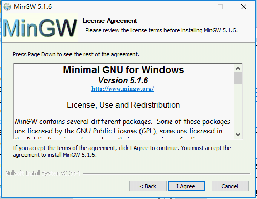 3、进入MinGW安装协议界面,点击【I Agree】。