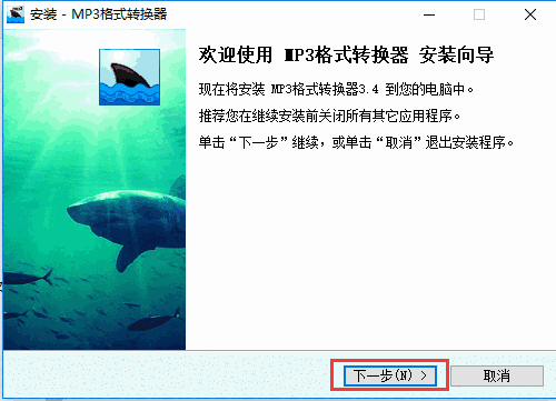 1、首先在本站下载MP3格式转换器软件包,解压后运行exe文件,进入安装向导界面,点击下一步。
