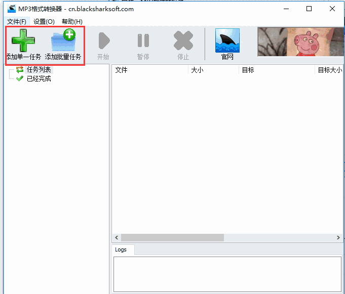 1、在本站下载安装好MP3格式转换器后,打开软件,如果只是一个文件就点击添加单一任务,如果有多个文件,点击添加批量任务。