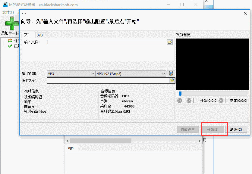 4、简单易用、绿色环保的mp3格式转换器由黑鲨鱼软件免费提供支持各种常见视频转为MP3,支持AC AAC(aac转mp3) MP3 WMA WAV MKA 等音频转码格式互转。