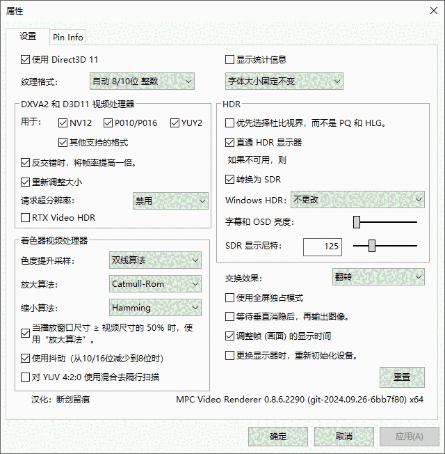 在 Direct3D 9 模式下,使用 DXVA2 硬件解码器和 DXVA2 视频处理器时,取消了帧复制(ZeroCopy)功能。