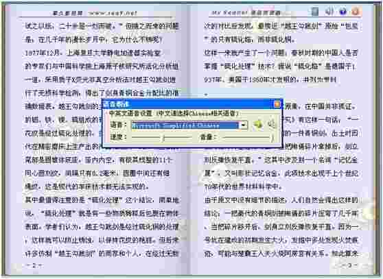 在这可以设置朗读的速度、音量和语音。选择好之后点开始朗读,就可以听小说了。朗读过程中还可以翻页,翻页的话,它就会从下一页的起始位置开始读。可以用快捷键来操作它的翻页。