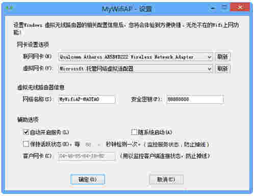 每次运行此软件后自动开启虚拟无线路由器功能。若以上几个设置项目不正确,慎用此选项